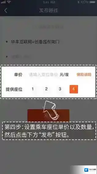 4、设置乘客座位单价以及数量,然后点击下方“发布”按钮。