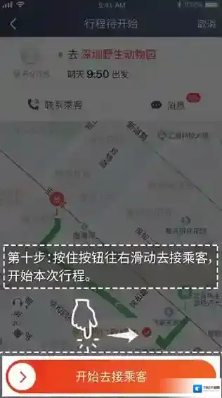 10、按住按钮往右滑动去接乘客,开始本次行程。