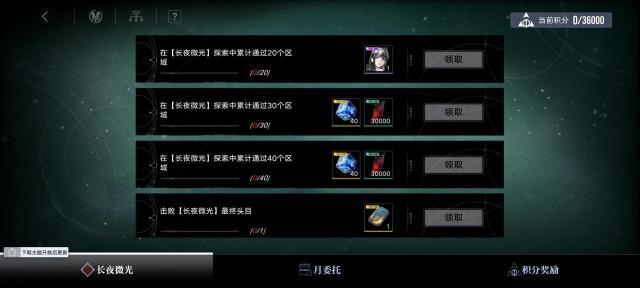 月委托为梦魇积分的额外获取途径,每月1号5:00将重置月委托中的任务,局长可通过完成月委托快速获取大量梦魇积分。