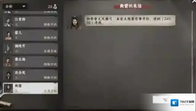 做悬赏任务将门派好感提升到25时收到梅珠芹飞鸽