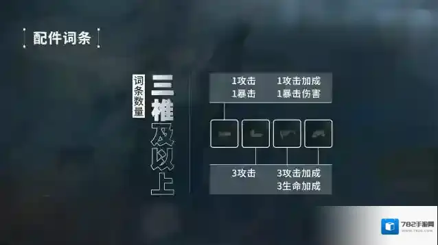 除此以外,莱妮的武器配件词条,也和其他角色也有所不同。携带1爆伤、4大攻击和4小攻击,剩下的词条如果是二椎及以下使用3暴击+1大生命;