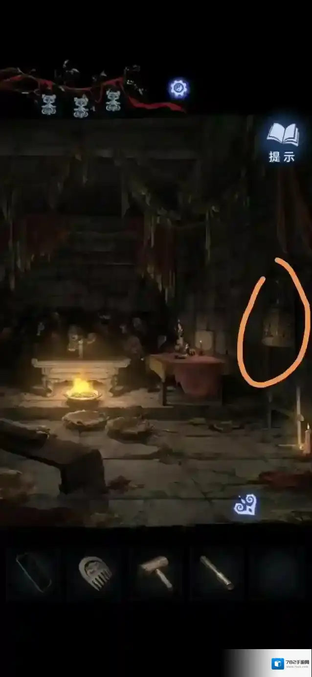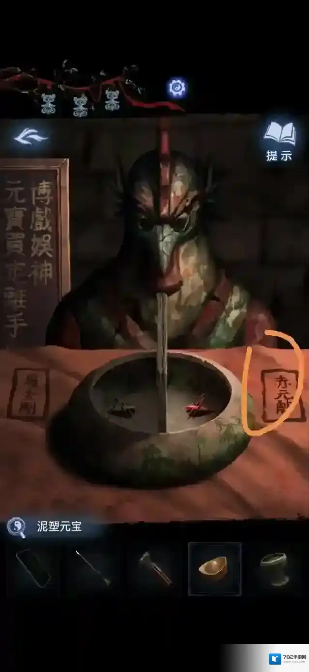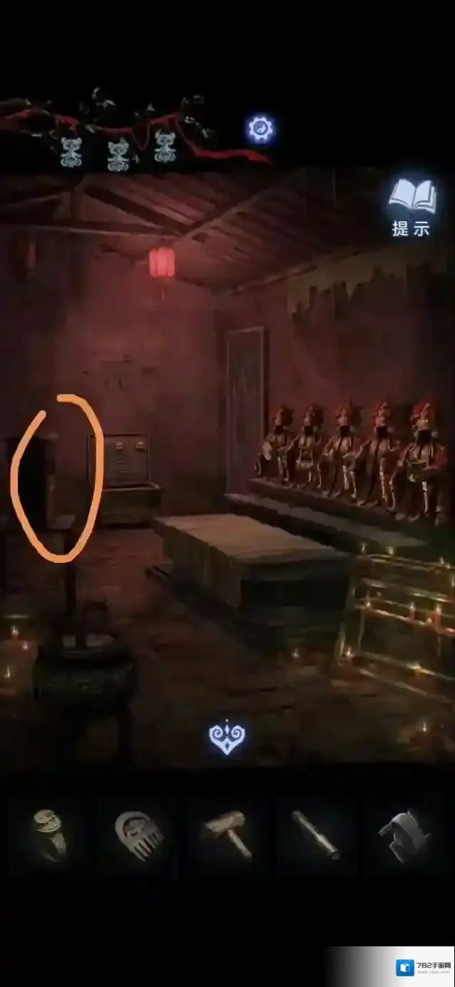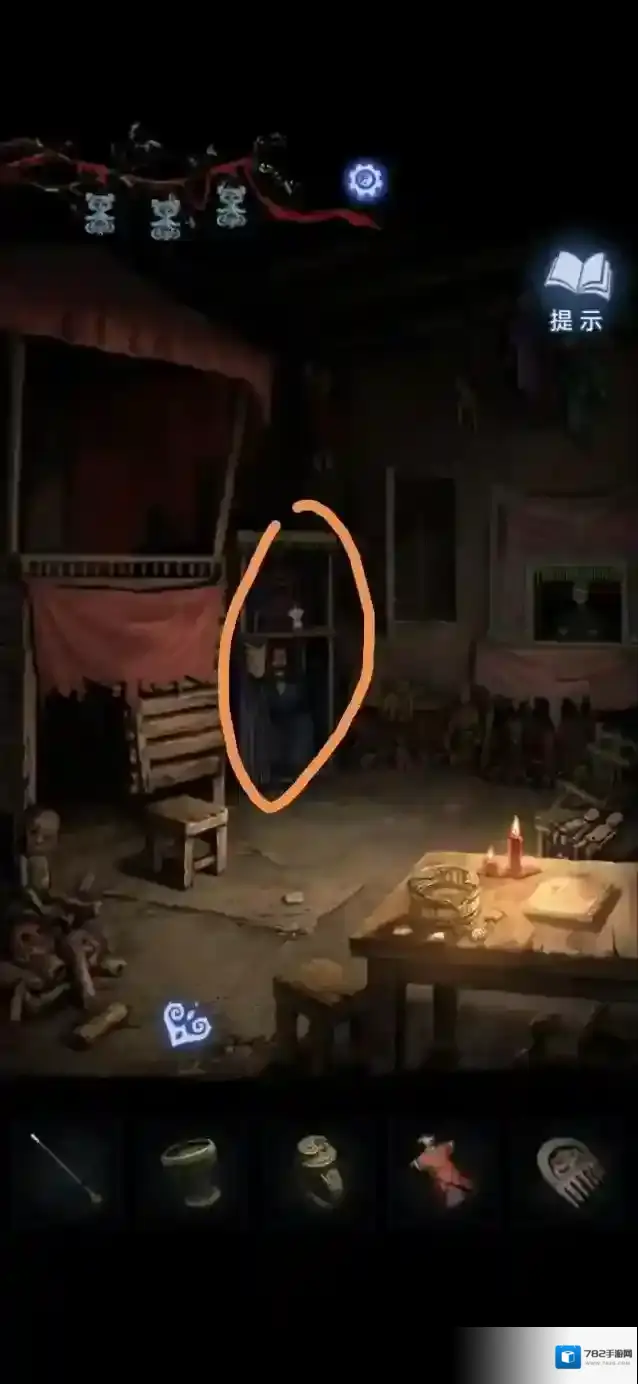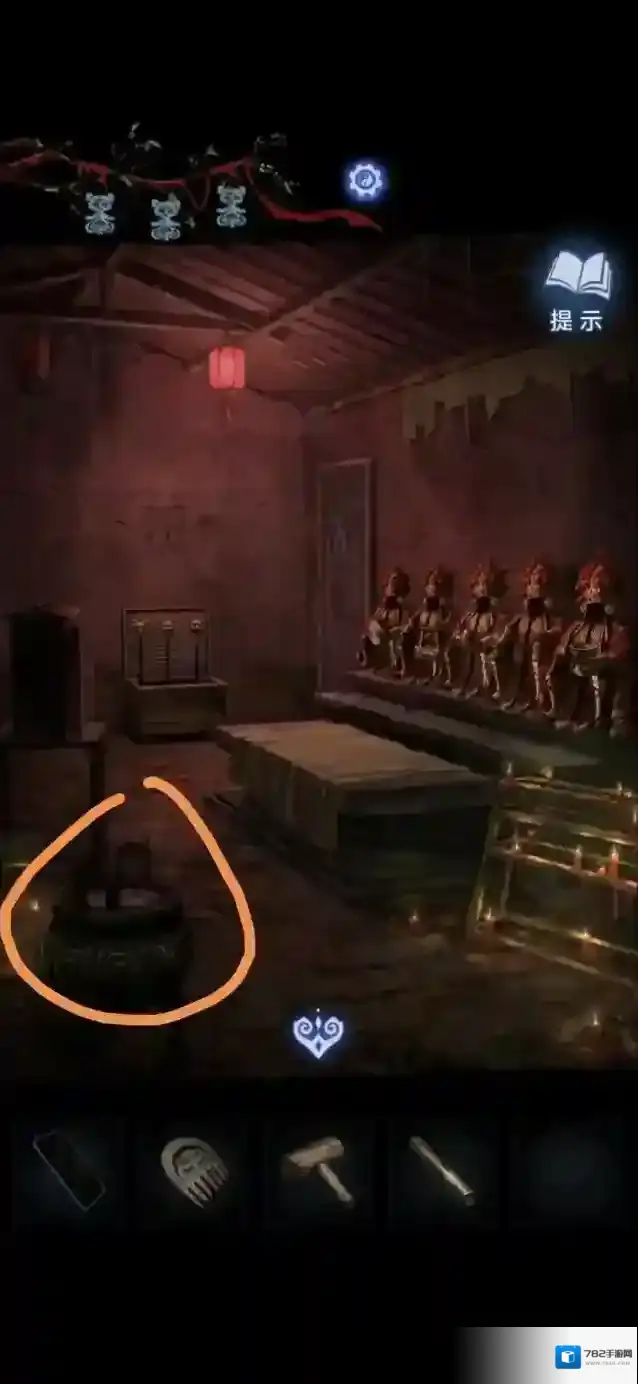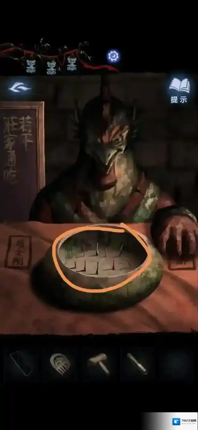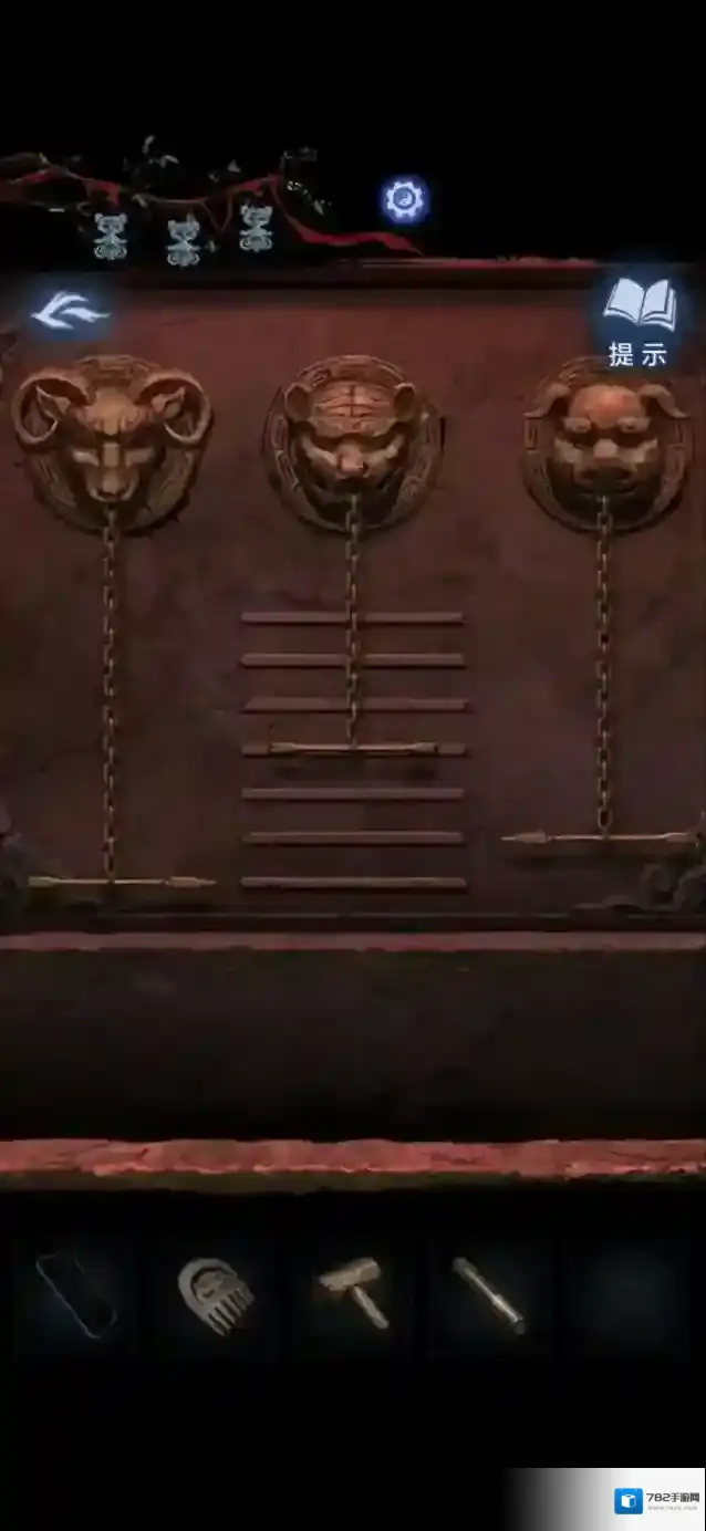 用奇怪道具在资料中比对,虎对应春夏秋冬为4,猪对应六个点为6,羊对应北斗七星为7,所以拉下锁链,点击获得阴寒的水