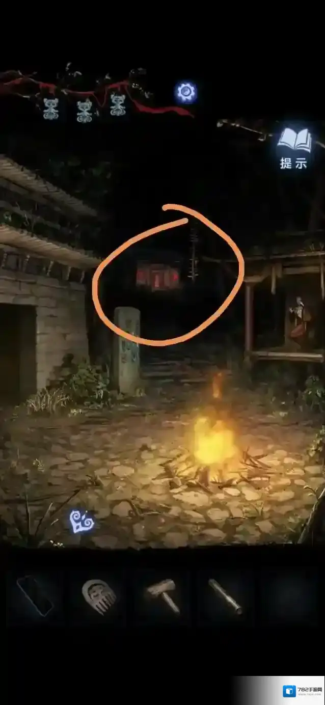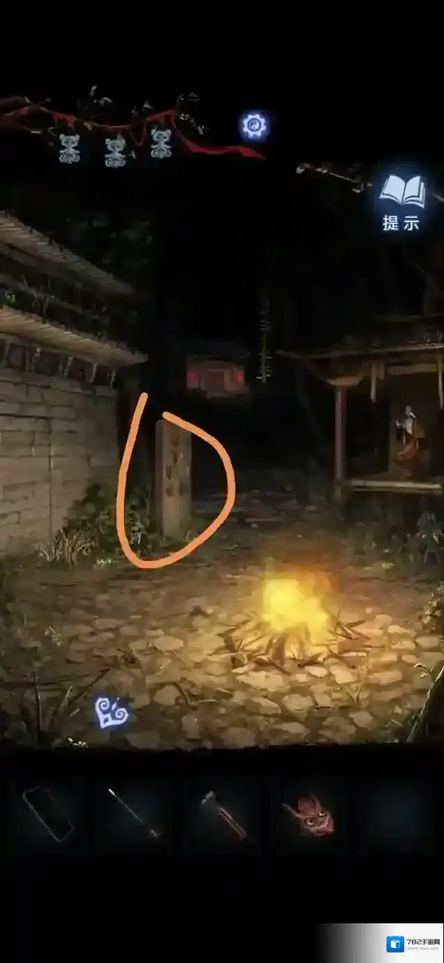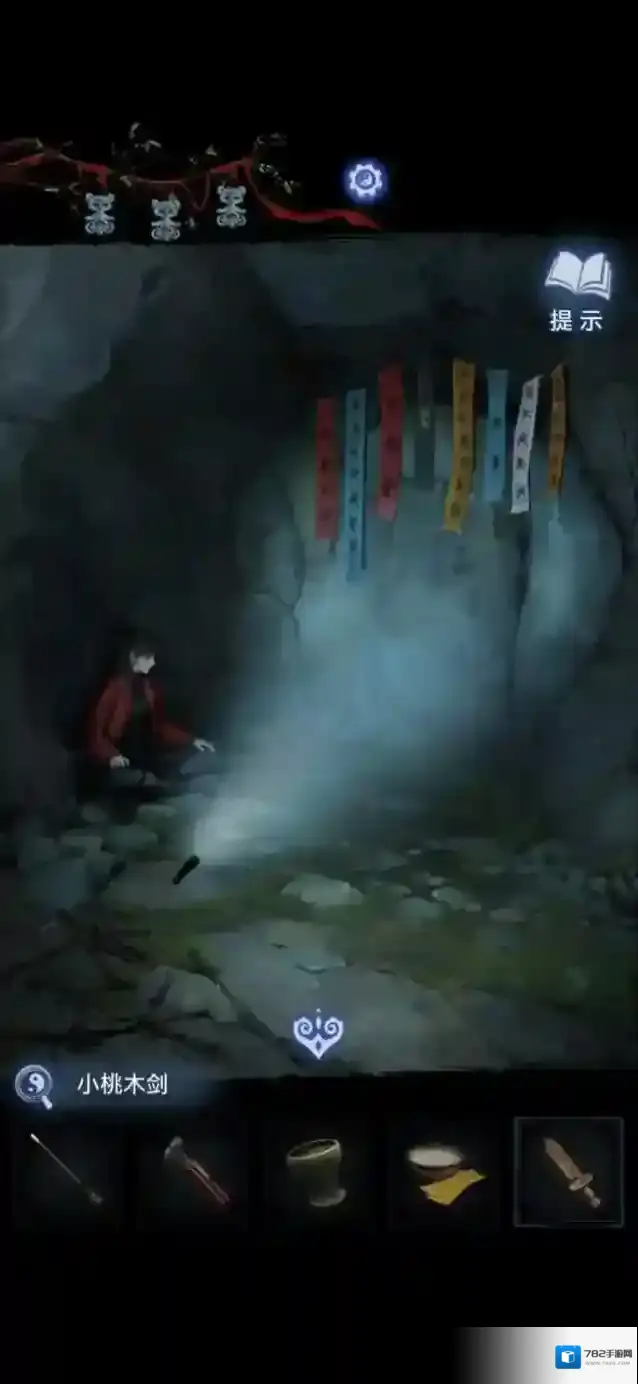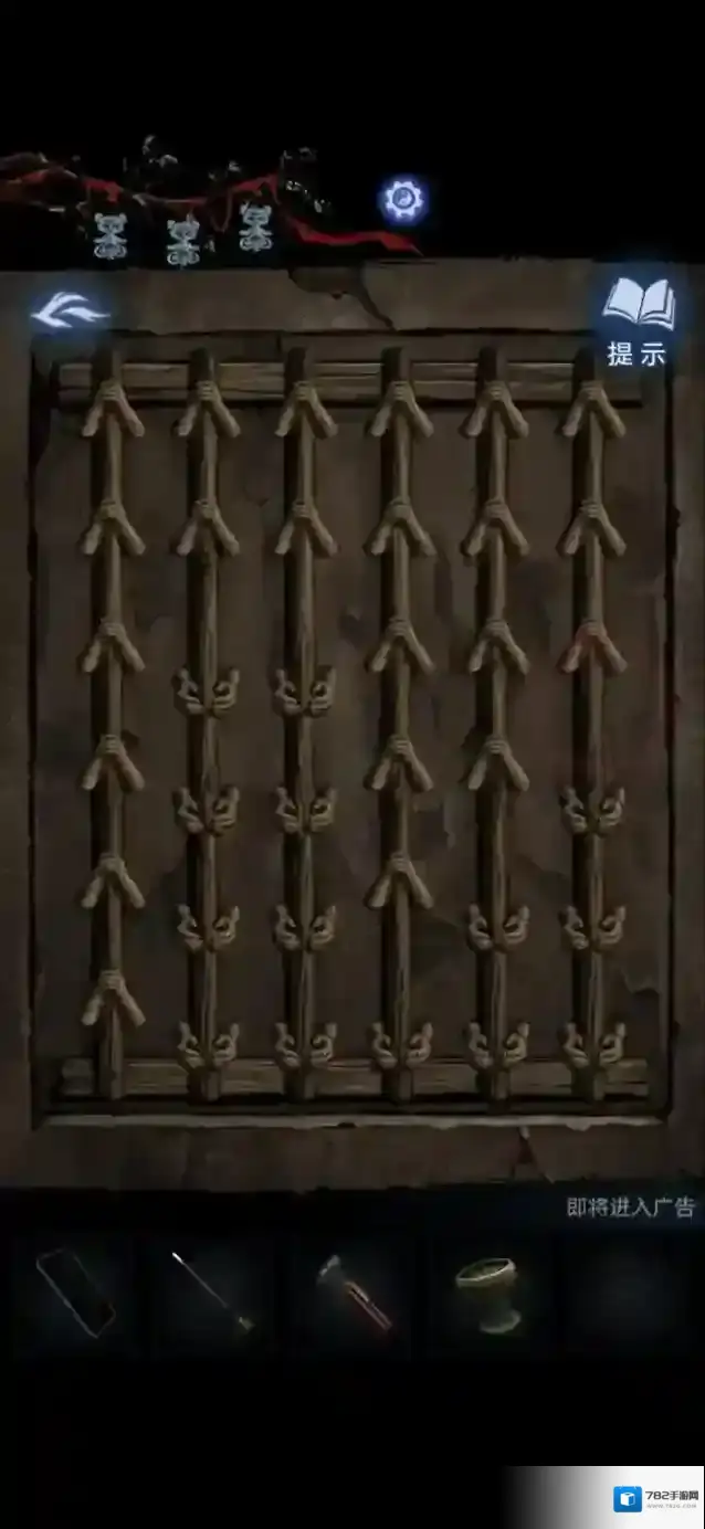 根据石门中桌子上的资料和树林里通过相机拍照得到的信息,可以解开石门内的木板,从左到右为622543,解开获得浆糊和符纸和小桃木剑