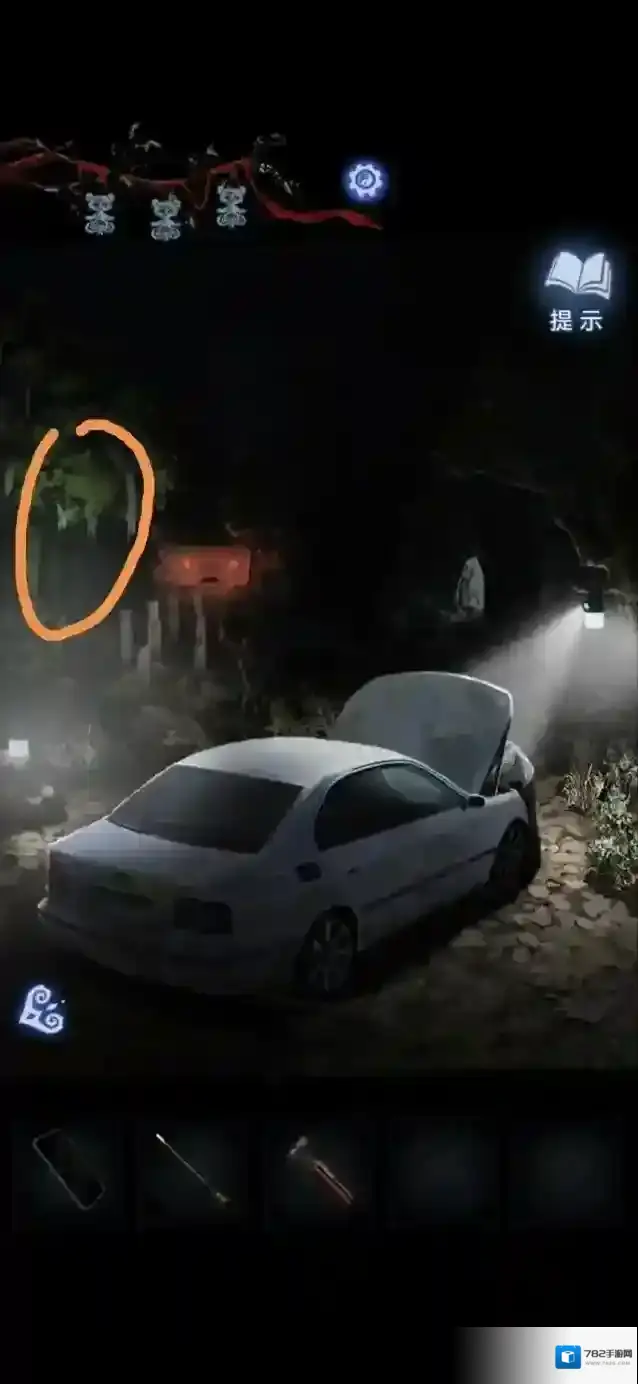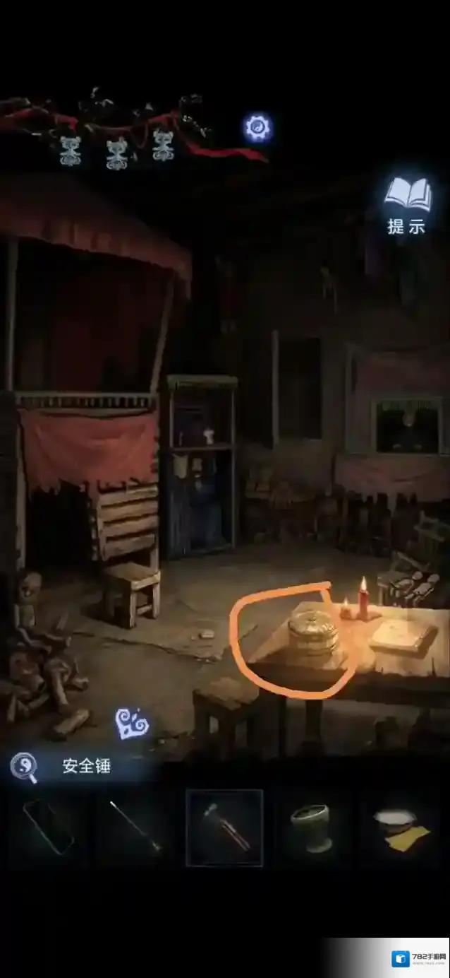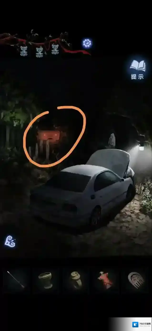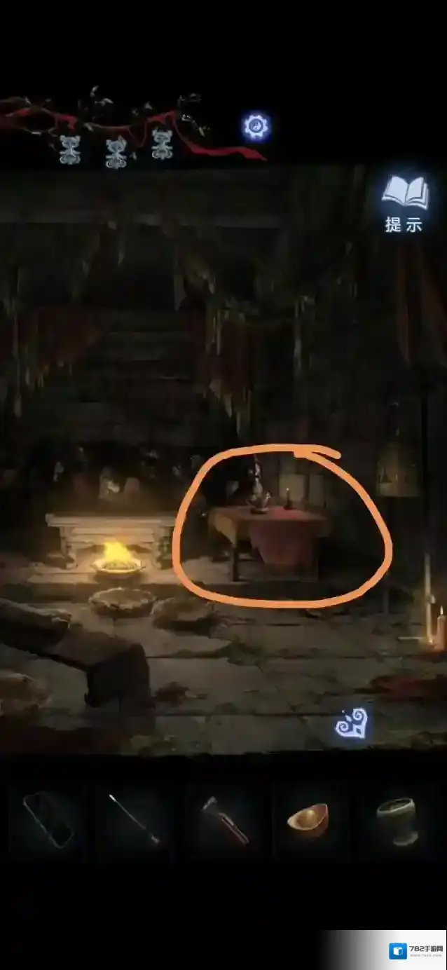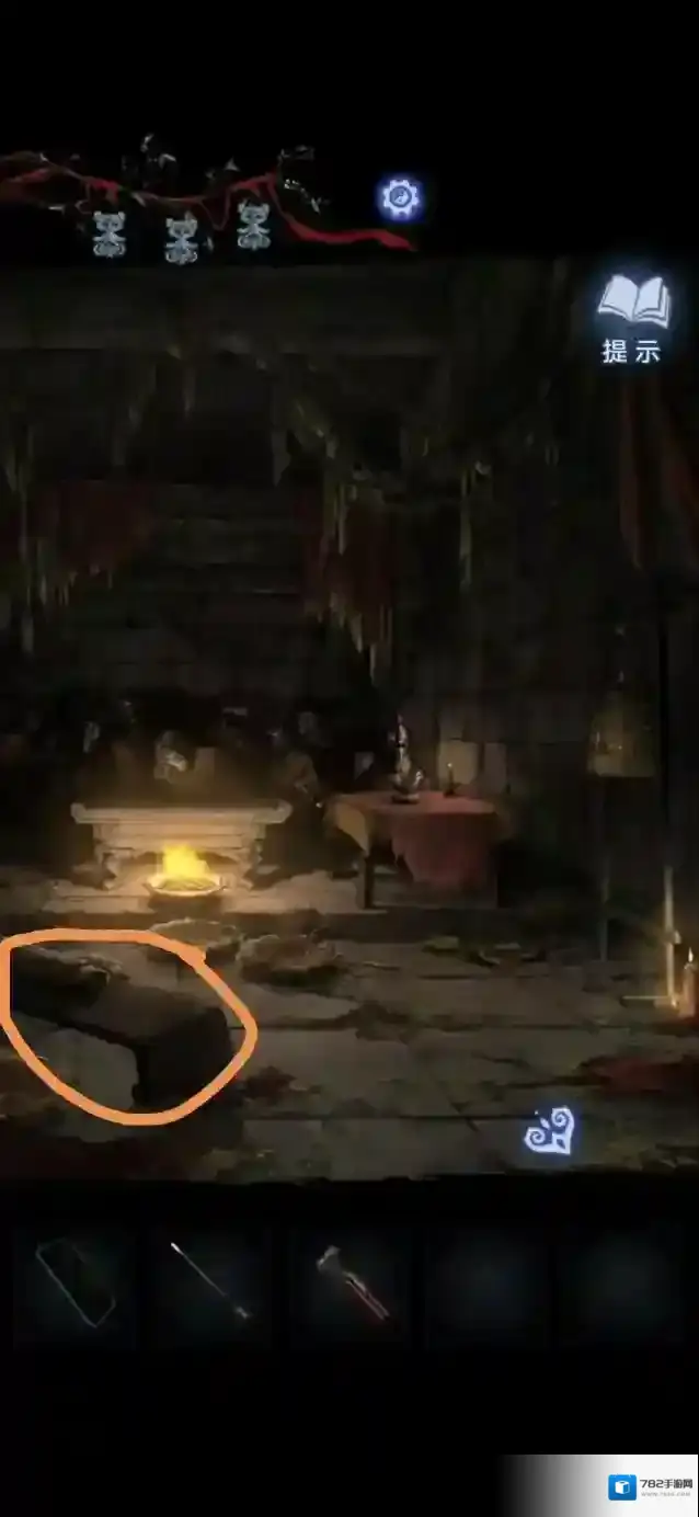 根据石门中桌子上的资料和树林里通过相机拍照得到的信息,可以解开石门内的木板,从左到右为622543,解开获得浆糊和符纸和小桃木剑