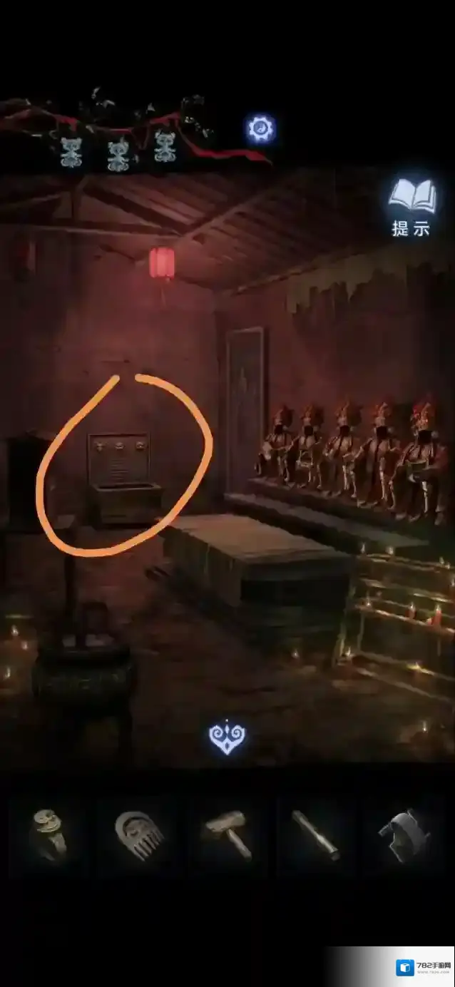 用卍字戒指和太极戒指打开寺庙里的箱子,获得铁枝木偶