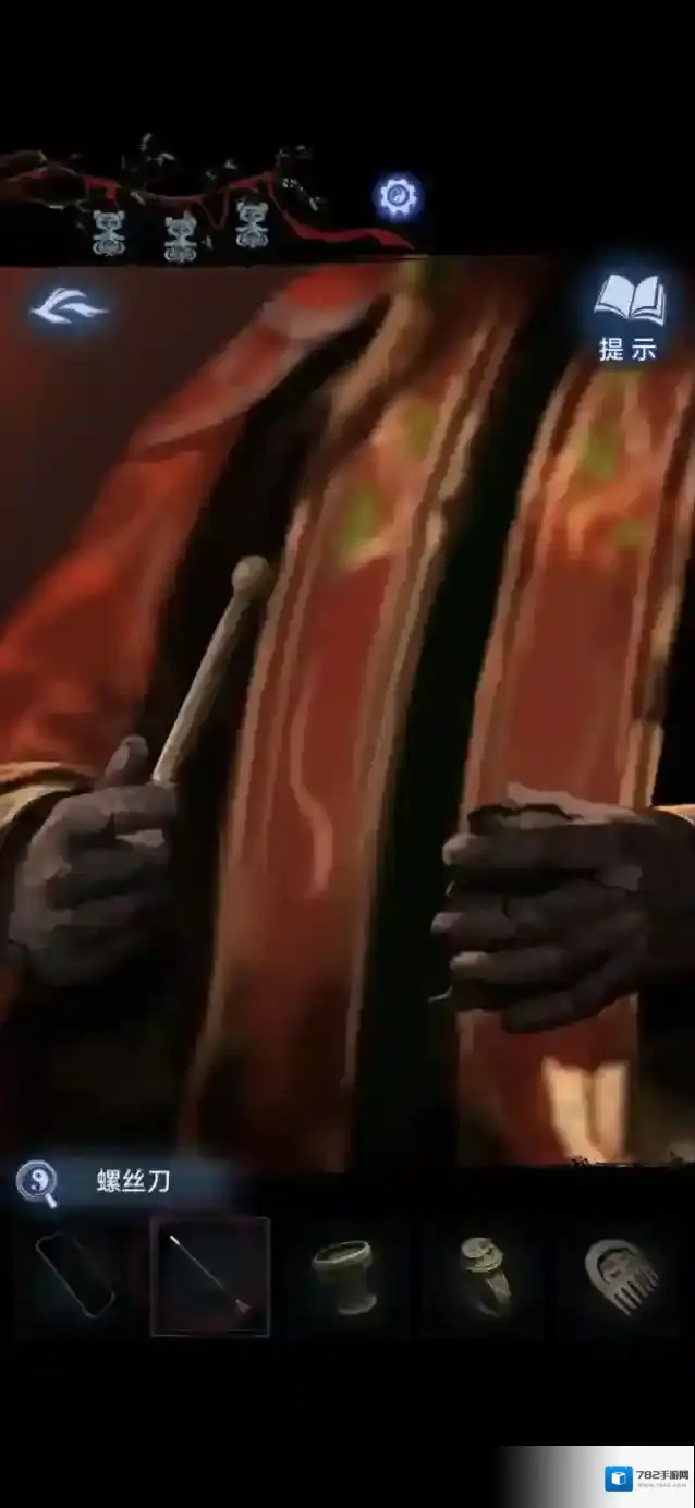 进入寺庙,用螺丝刀把雕像手里坏掉的缶撬出来,然后把缶放进去,获得杖头木偶