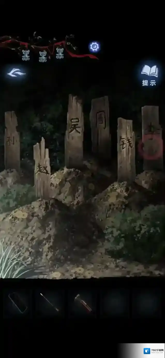 根据树林里通过手机看到的笔画数量,摆放墓碑位置,摆完获得蚕丝香囊