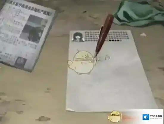 进门后先看看左边沙发上的书,没什么线索就是看看,毕竟这可是连载刊物啊!然后查看一下右上角的桌子,桌子上有梅姐的花边新闻,不过重点是桌子上有个送子娘娘画像,只要找到纸笔我们就能来临摹了,看完桌子后退小高能出现一个小推车,从小推车上拿到一束花,右边的花瓶是空着的,把一束花放在右边床头柜的花瓶里面,从床尾位置拿到墨盒和圆珠笔。
