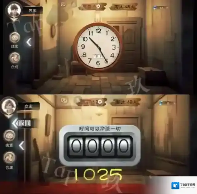 1-根据男主视角钟表的线索(1025)打开机关,获得右小三角木牌,放到门上
