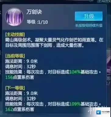 简评:蜀山技能CD较长,在前期可升级御剑术补充伤害,中后期技能点数较为紧俏,不建议升级普攻技能。
