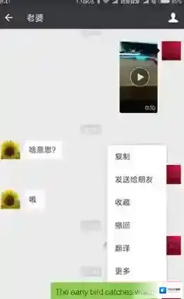 说到翻译,微信还自带翻译功能,只需要在微信对话或朋友圈中按住一段外国语,就可把它快速的翻译为系统所用语言。