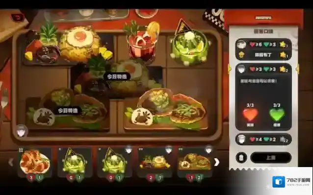 完成今日营业后,可解锁菜品「亨利叔叔的坏主意」、「风滚玉米片」,餐厅装饰「置物篓」、「无线电视」、「咖啡硬糖」、「多肉盆栽」: