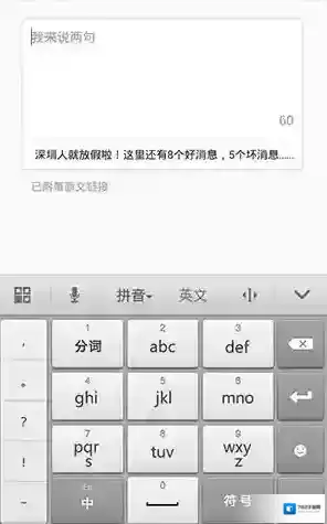 4、此时就进入到新浪微博的正文编辑界面,下面可以看到分享的新闻标题已经地址,填写好分享的理由以后点击界面上的发送按钮即可,这样就成功的分享了一点资讯中的新闻。