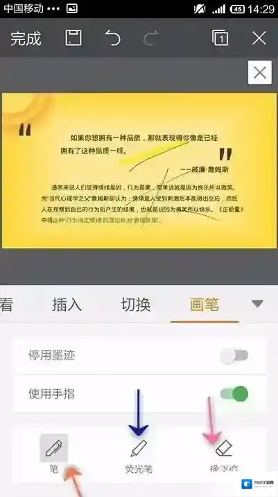 在停用墨迹后面打开绿色后,就不能使用画笔功能啦