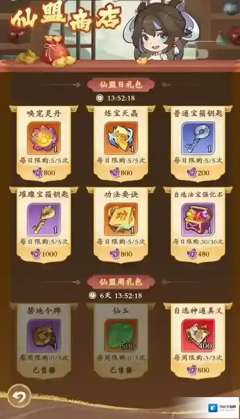 在仙盟中获得个人贡献,可以使用个人贡献换取各式各样的奖励,甚至可以兑换禁地令牌,助力道友获取更多的装备提升战力。其中日礼包每日进行更新,周礼包则是每周进行更新,仙友可以留意商店界面的倒计时噢~