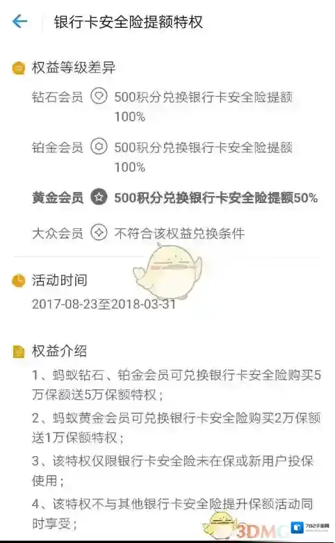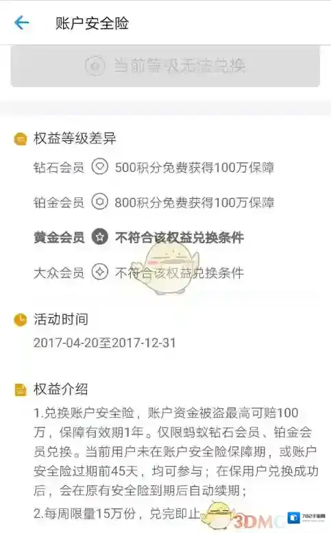 6、银行卡安全险,账户安全险。这两个是我比较想兑换的,结果看明细发现我都换不了,这里列出来给大家参考。