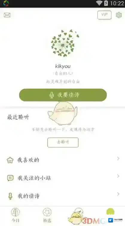如果想听自己读的诗,个人界面最下方有一个我的读诗,点进去就可以看到自己读的诗。