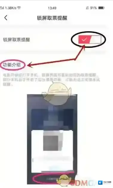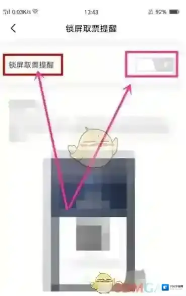5.然后在实验室新功能中,点击打开右侧“锁屏取票提醒”的开关,如图所示