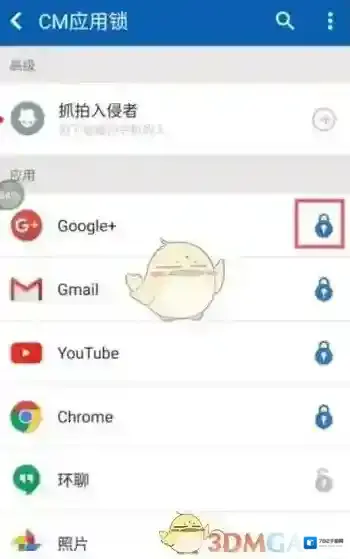 6.以后再次使用的时候,只要进入应用锁功能进行设置,点击蓝色的小锁,就可以开启和关闭你想锁定的应用喽。