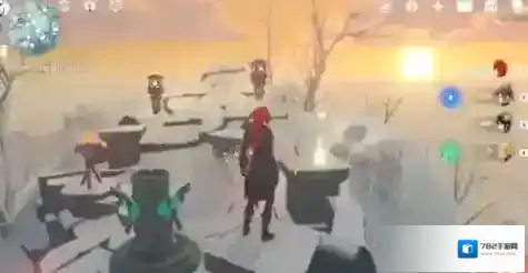 第二个在一个雪堆下面,用元素视野看一下一目了然,用火元素攻击消融积雪回收信标。