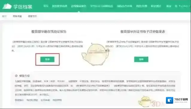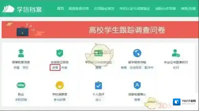5、登录成功之后,进入学信档案首页,在首页选择在线验证报告-查看;