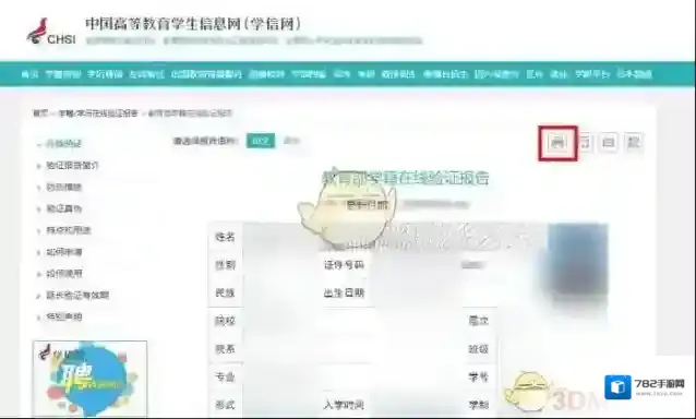 8、最后可以看到我们的学籍信息,点击上方的打印按钮,即可打印学历认证。