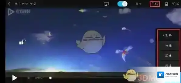 5、在横屏播放状态下点击屏幕中间,显示菜单后点击右下角的清晰度,将其改为需要的清晰度,再点击上方的“下载”即可;
