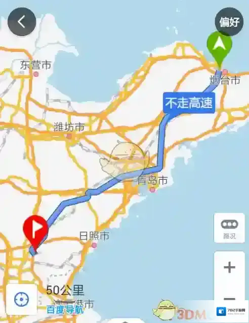 5、我们重新按照起点、终点规划一下线路,可以看到已经是“不走高速”模式了。