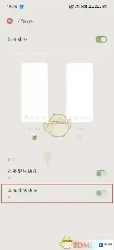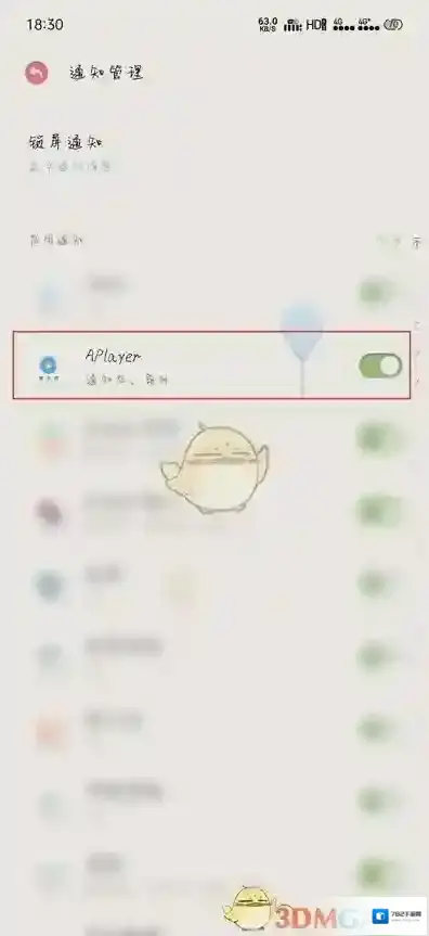 5、如果不想收到APlayer的任何通知,可以关闭APlayer右侧的滑块,不允许APlayer发送任何通知消息;
