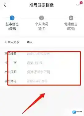 4、进入填写健康档案页面,输入真实姓名,性别,手机号码,其他个人信息完成档案建立。