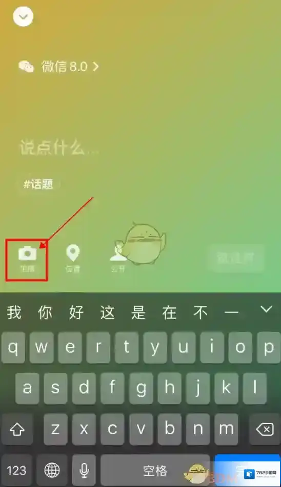 3、点击状态编辑界面的“拍摄”