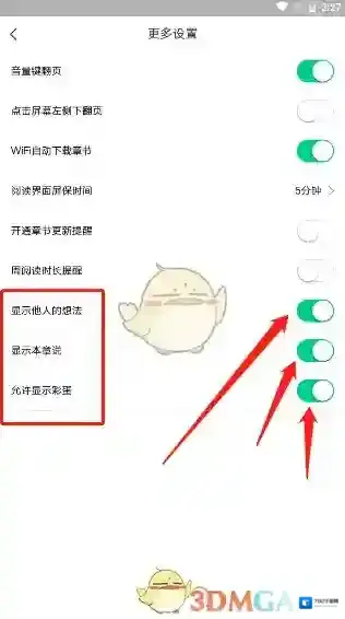 4、找到“显示他人的想法”、“显示本章说”还有“允许显示彩蛋”,把这几个功能关闭即可。