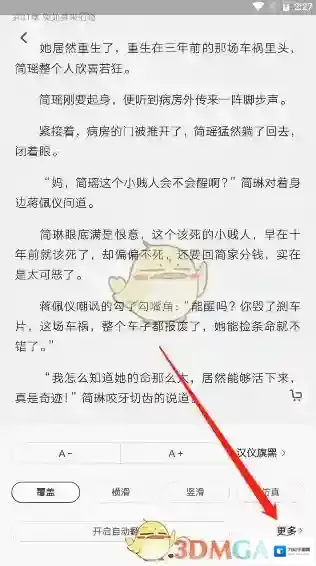 2、我们在小说的阅读界面,点击手机屏幕中心,然后在下方向右滑动一下。