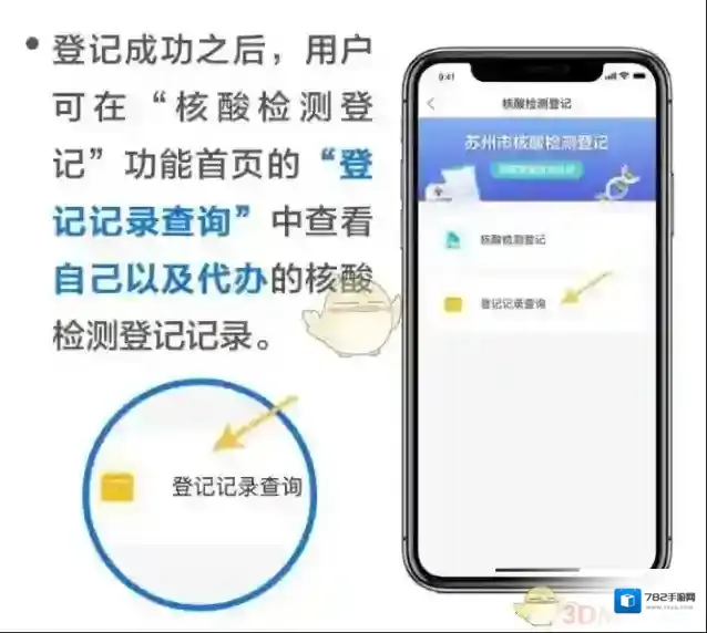 1、用户使用手机号注册登录“苏周到”,在“苏周到”首页顶部菜单进入“核酸检测登记”,点击“核酸检测登记”。
