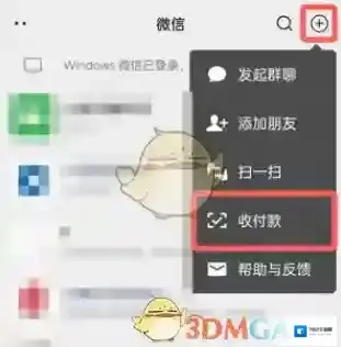 1、打开微信,点击右上角“+”,然后点击“收付款”;