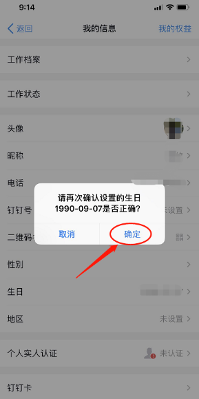 6、在弹出的确认信息中,点击“确认”,生日就设置好了。