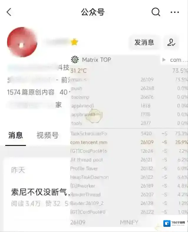 7、打开功耗浮窗,就能在手机屏幕上方看到手机的实时温度和其它的一些信息了