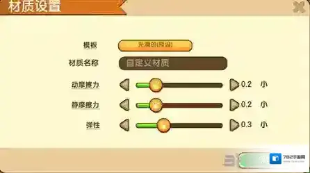 这些是已经设定好的物理特性,比如:光滑的,就是滚动的时候速度不会迅速降低。高弹性,就是被撞击以后反弹速度会比较大。无弹性,就是被撞击以后不会反弹。粗糙的,就是滚动的时候速度会快速降低。