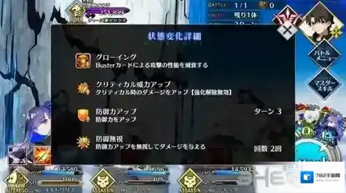 ③第三管HP耗尽后敌方使用第三划令咒,赋予Boss战续1次,死后回复全部HP。本Buff不可解除。