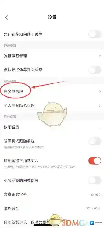 《acfun》移除黑名单方法 2025-07-28 12:18:57 编辑:小榆 分类:应用教程 • 阅读:423 1、首先打开手机上的“AcFun”APP,点击“设置”。 2、然后在“隐私设置”中找到“黑名单管理”。 3、最后点击用户右侧的“移出”按钮即可。 本文内容来源于互联网,如有侵权请联系删除。 Acfun应用相关内容 全部 Acfun连播 Acfun选择 Acfun续播 Acfun打开设置 Acfun点击 Acfun 《acfun》新秀榜查看方法 ACFun(A站)以其独特的弹幕文化和丰富的视频内容吸引了众多用户的关注。特别是对于那些热衷于二次元文化的年轻人来说,A站更是一个不可或缺的聚集地。在A站上,有一个备受瞩目的榜单--新秀榜,它汇集了众多新晋的优秀创作者和他们的作品。那么,如何查看AC... 2025-08-14 《acfun》删除对话方法 1、首先,点击消息图标,打开我的消息功能;2、然后打开之后,长按对话,点击删除对话按钮,就可以删除选中的对话了。 本文内容来源于互联网,如有侵权请联系删除。 2025-07-28 《AcFun》私信消息提醒关闭方法 1、打开AcFun,点击右下角我的。 2、点击右上角消息图标。 3、点击右上角三个点,点击消息设置。 4、打开私信。 5、勾选不接受任何消息提醒即可。 本文内容来源于互联网,如有侵权请联系删除。 2025-07-26 《AcFun》为什么进不去 AcFun倒闭了吗 A站是国内著名的弹幕网站之一,近期A站网页突然打不开了,这究竟是什么原因呢?A站难道倒闭了吗?下面就让3dM小编来为大家介绍一下A站进不去的原因吧! Acfun中国 A站倒闭了吗? 据相关报道: 中国二次元弹幕视频网站Acfun融资不畅,员工正在计划... 2025-06-28 发表回复 请登录后评论... 登录后才能评论 评论列表 (0条)