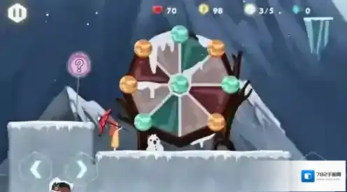 关卡中部分浅色冰锥也是小陷阱,它们并不是固定的,站在上面反而会慢慢下沉,务必快速经过才能避免掉落。跳过这几个冰锥后我们会来到该关卡的第二个难点,一个大型的水上平台。该平台由2个比较复杂的机关组成,第一个齿轮机关相对简单,正确移动并开启机关,上方的横木就会自动降至平台缺口处,这个解谜点就能顺利通过啦。