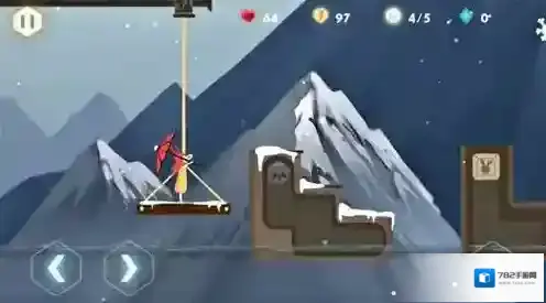 离开水上平台,我们即将看到一个由吊臂吊着的横木,跳上移动横木后不要急着往前跳,前面的所有平台实际上是一连串机关,千万不要尝试跳上去,乖乖站在横木上,滑动每个平台上的机关弄沉这些怪异的路障,就能由吊臂吊着到达对面的冰岸。