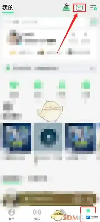 1、打开QQ音乐,点击右下角我的,再点击右上角的消息图标。