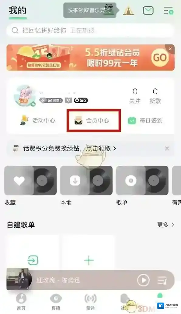1、点击我的进入qq音乐个人中心后,选择会员中心。