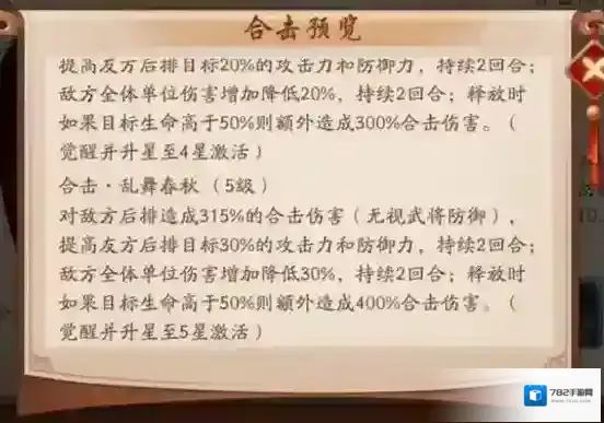 同样作为紫金兵符不受到血脉压制,在天禄貔貅给予敌方前排伤害的同时,乱舞春秋又补充了对敌方后排的打击。