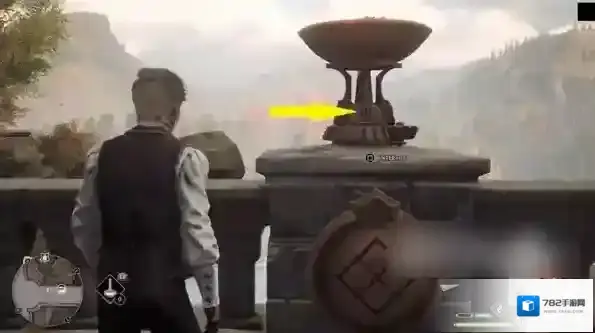 大桥两边各有4个火盆,使用咒语火焰熊熊把它们点燃,然后就可以转动了。每个火盆下方都有罗马数字,下边的柱子上则是图案,将火盆数字和图案对应即可解开谜题。