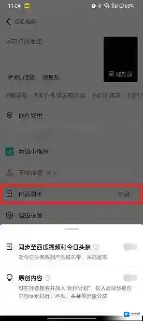 5、建议开启“作品同步”功能,便于更好的同步作品到青桃app,编辑好作品描述和权限后,点击“发布”;
