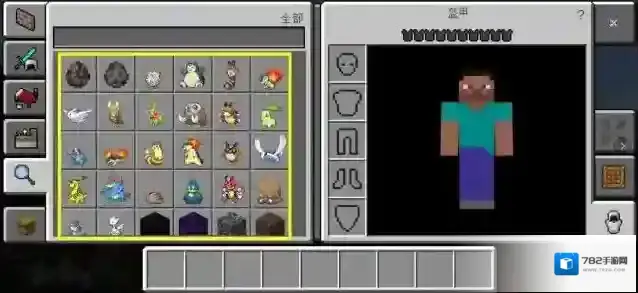 3、点击“编辑设置”上方的创建,进入游戏里,再点击下方背包栏目(如下图↓),可选择不同栏目,里面就能看到模组了