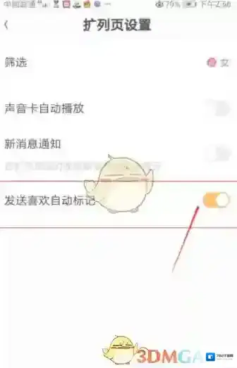 4、然后将“发送喜欢自动标识”后面的开关关掉即可。