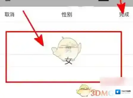 5、最后,在弹出的小界面中选择自己的性别,然后点击完成按钮即可。